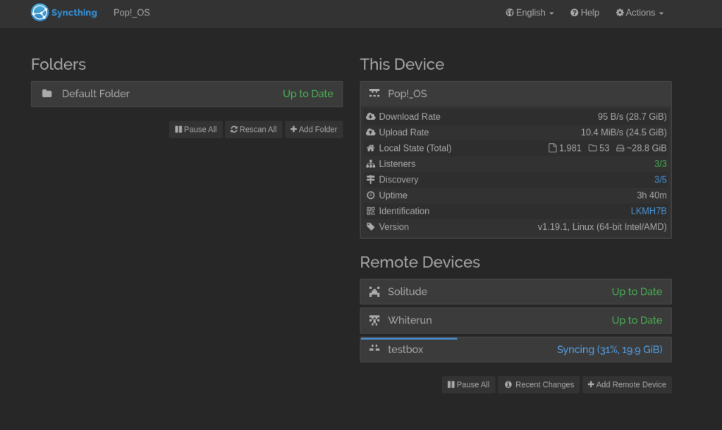 We now have Syncthing running on our Host Machine and it will need to synchronize to another host.