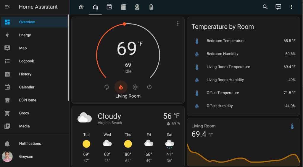 To say Home Assistant only provides a few toggle buttons for some smart lights and smart plugs would be massively underselling the product and would be an egregious crime. In my short time of diving back into Home Assistant, I have been absolutely blown away by all of the functionality this tool can do. Smart plugs aside, you can create dashboards to monitor sensors in your devices to check on battery health and statistics, import camera feeds to remotely check on your home, integrate humidity and temperature sensors to see trends, configure server monitoring tools, even use Home Assistant as your dedicated Wireguard VPN Server.
